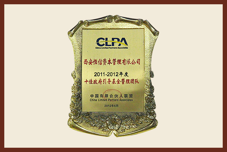 西安恒信資本管理有限公司2011-2012年度十佳政府引導(dǎo)基金管理團(tuán)隊(duì)