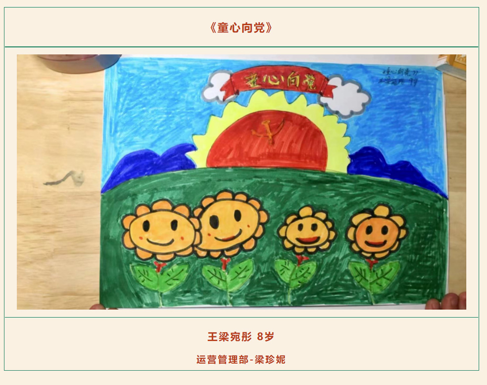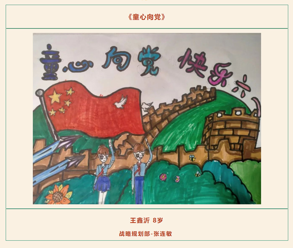 為推動(dòng)愛(ài)黨愛(ài)國(guó)情懷在員工家庭中落地生根,培育美好家風(fēng),構(gòu)建和諧融洽的親子關(guān)系,營(yíng)造文明健康的家庭氛圍,在“六一”國(guó)際兒童節(jié)來(lái)臨之際,公司工會(huì)開(kāi)展“童心向黨 快樂(lè)六一”親子繪畫(huà)活動(dòng)。
